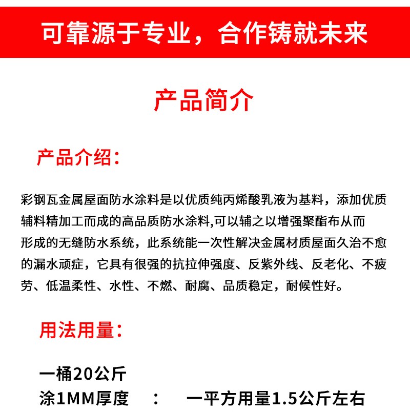 金属屋面防水涂料 彩钢瓦铁皮瓦钢结构用 内墙外墙屋顶楼顶厂房涂膜